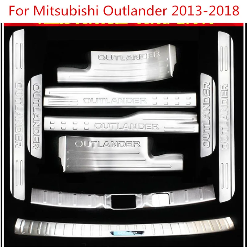 Высококачественная накладка из нержавеющей стали/порог двери и Задний бампер протектор порога для Mitsubishi Outlander 2013-2018, автостайлинг