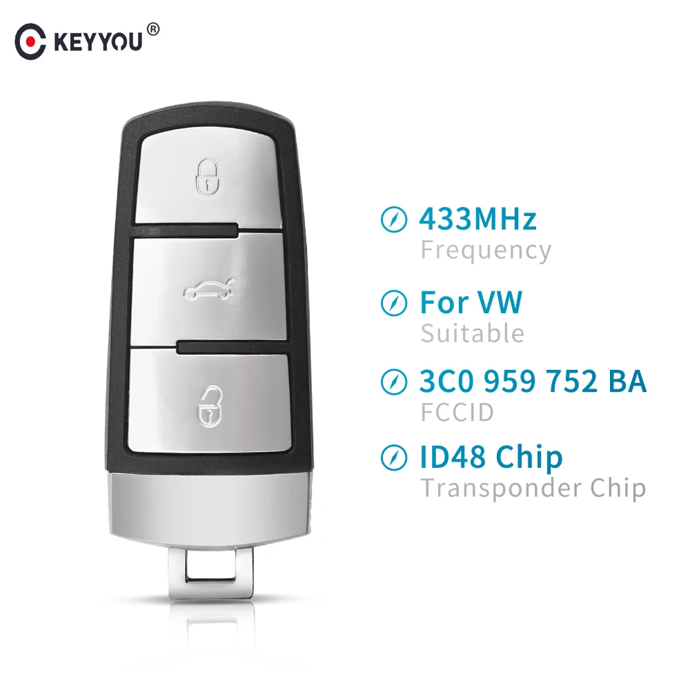 KEYYOU 3 кнопки Keyless 433 МГц ID48 автомобиля удаленный ключевой 3C0 959 752 BA для VW Passat CC автомобилей запись ключа Fob ЗАМЕНА чехол