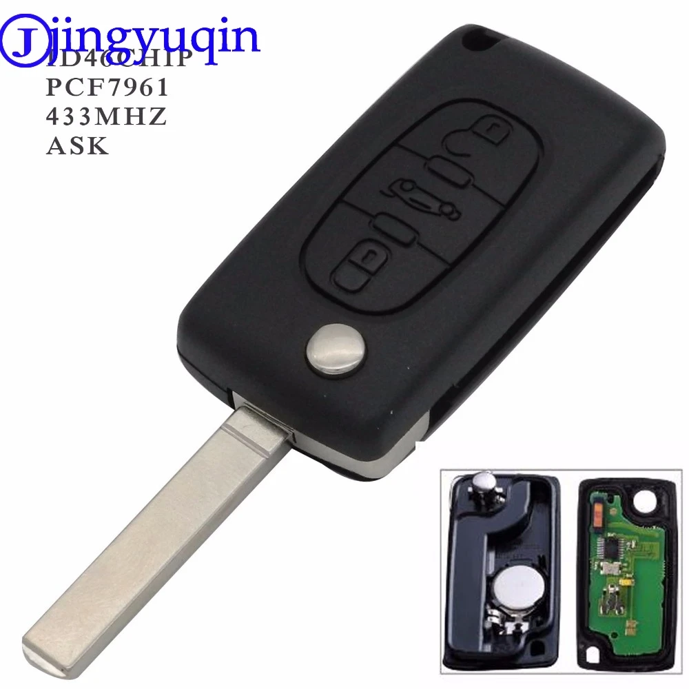 Jingyuqin дистанционный ключ 3 кнопки подходят для peugeot 407 308 307 607 бесключевая запись ID41 чип (CE0523, ASK/FSK, VA2/HU83)