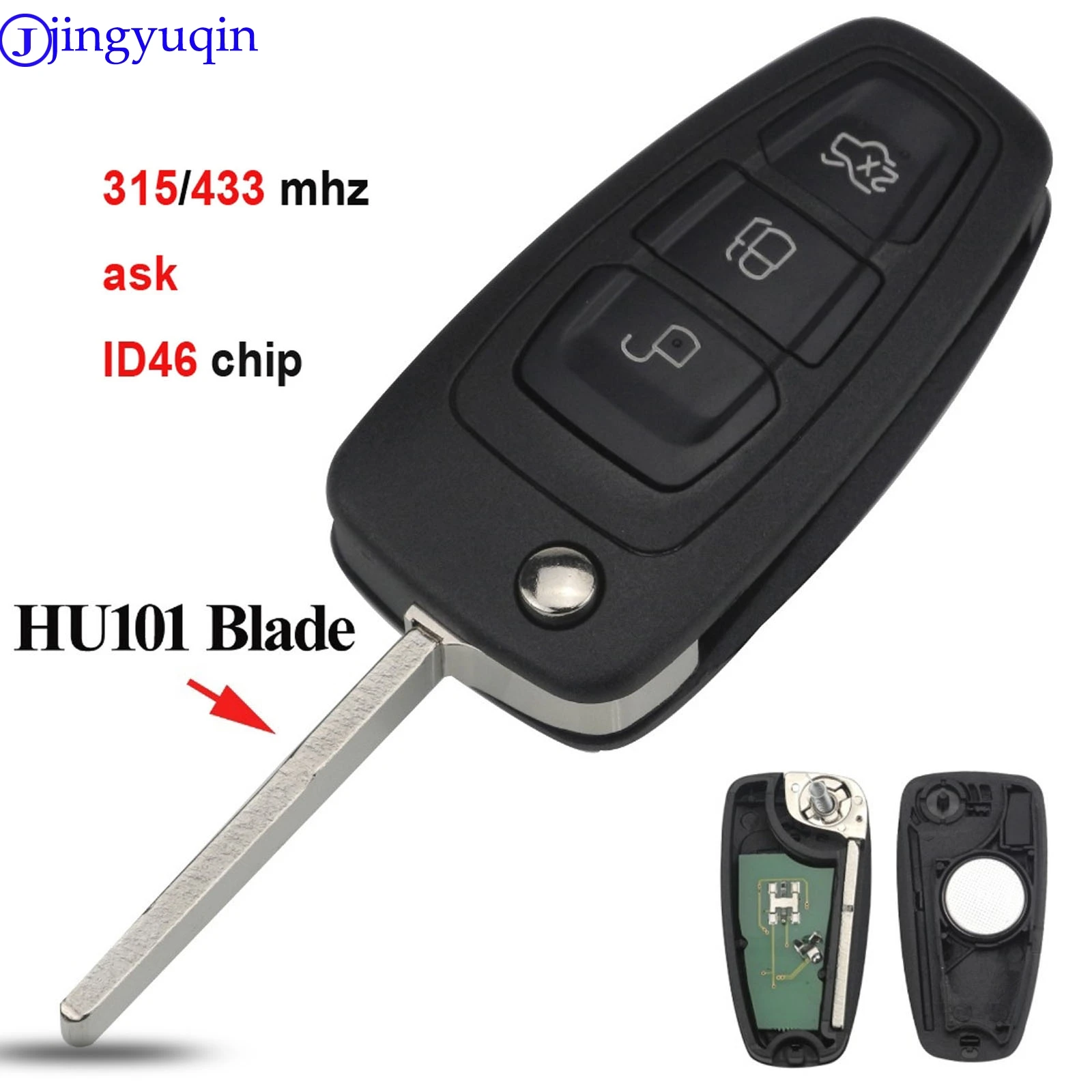 Jingyuqin дистанционный ASK 433/315 МГц ID63 чип 3 кнопки флип-ключ для автомобиля чехол Корпус для Ford Focus Fiesta 2013 Fob HU101 футляр для лезвий