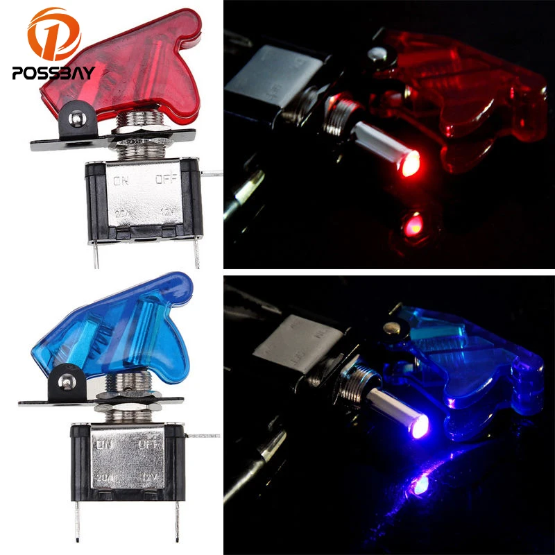 POSSBAY автомобильный тумблер 12 В 20A светодиодный выключатель света двигателя зажигания кнопка включения выключения красный синий прозрачный ...