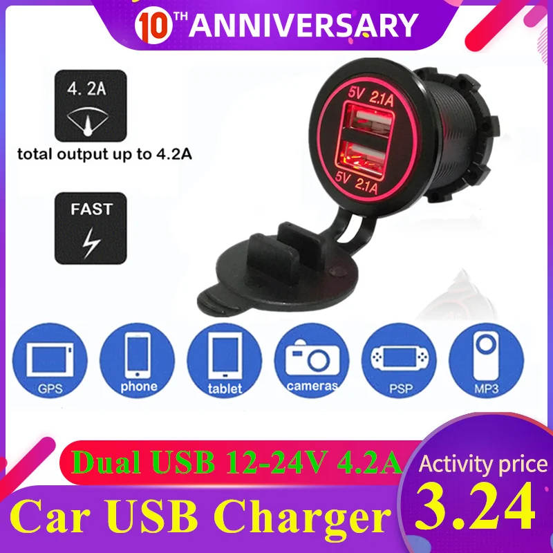 OBD2 автомобильное USB зарядное устройство для мобильного телефона PAD LED 4.2A двойной USB Автомобильное зарядное устройство розетка 12-24 в зарядное устройство адаптер автомобильные аксессуары