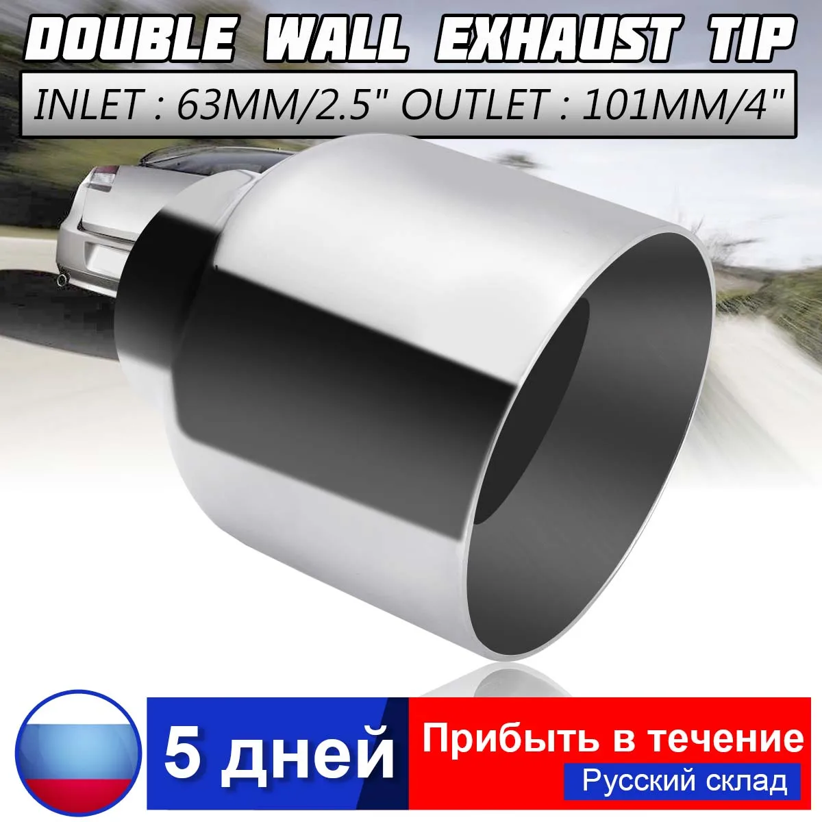 Универсальный автомобильный наконечник выхлопной трубы 60 мм 100 мм вход выход авто хвост трубой глушителя двойной стены срез под углом выпус...