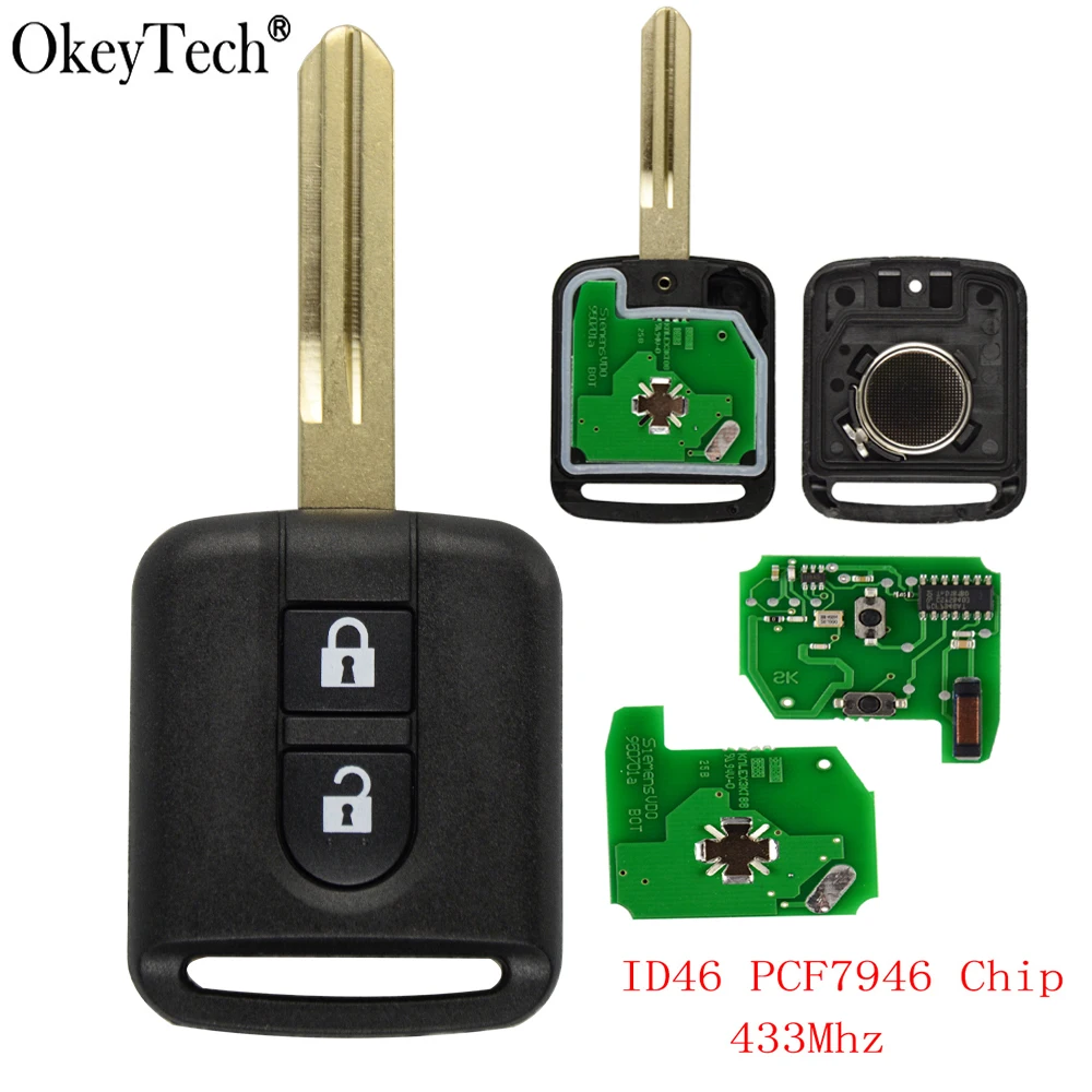 Okeytech 2 кнопки 433 Mhz ID46 PCF7946 Чип дистанционного ключ для автомобиля nissan elgrand X-TRAIL Qashqai Navara micra Note NV200