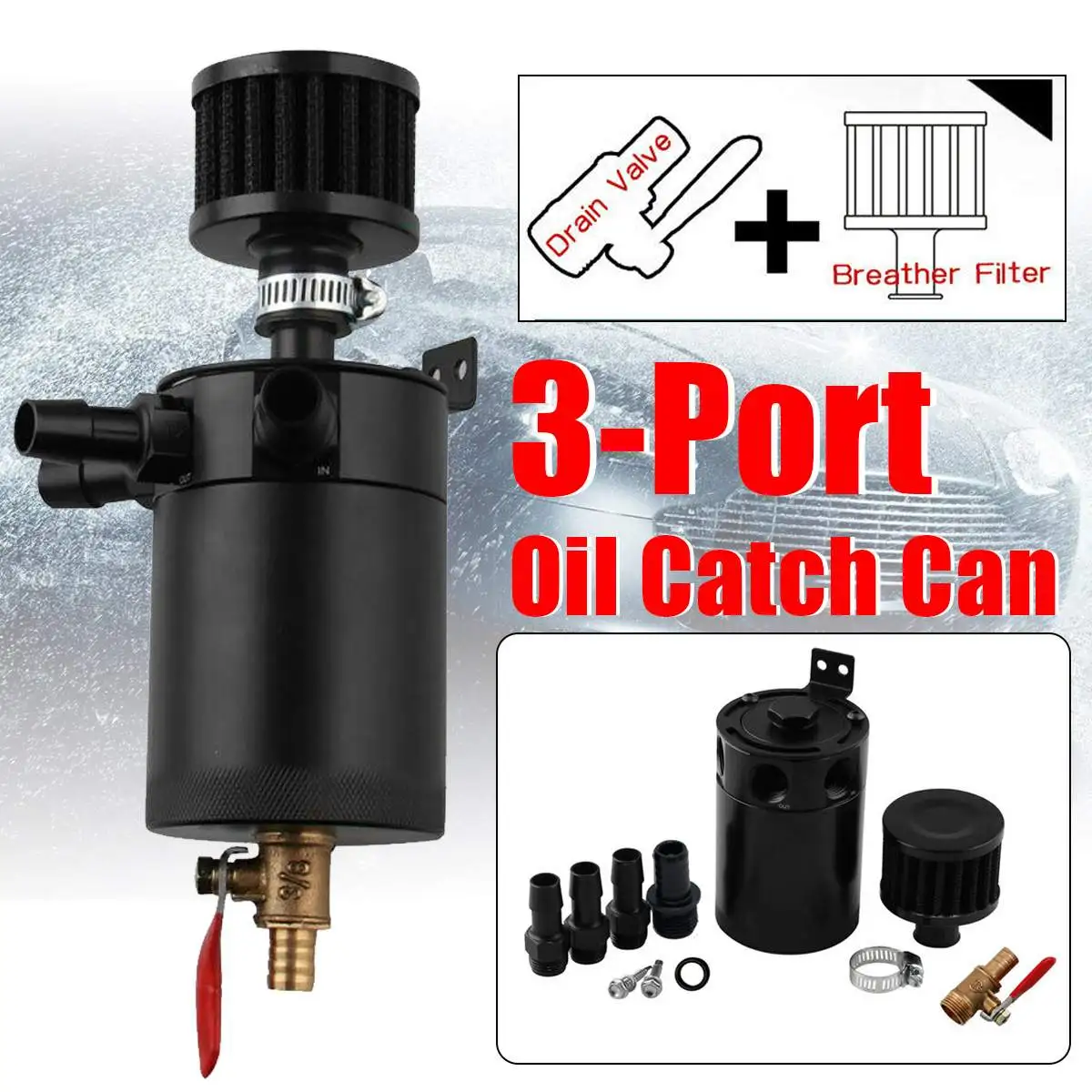 Универсальный 3-Порты и разъёмы маслоуловитель резервуар с дренажный клапан воздушный фильтр компактный тупик Алюминий масляный бак топливный бак
