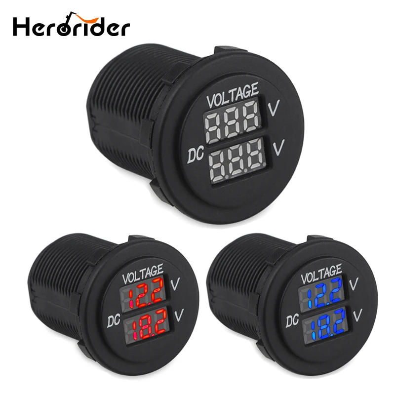 СВЕТОДИОДНЫЙ цифровой двойной Вольтметр для мотоцикла автомобиля лодки AUX главный датчик напряжения батарея монитор Панель Авто круглый вольтметр тестер