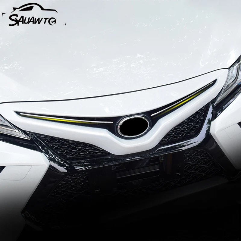 Нержавеющая сталь автомобиля Передняя решетка гриль Логотип Эмблема декоративная полоски крышка наклейки для Toyota Camry 2018 автомобиль-Стайли...