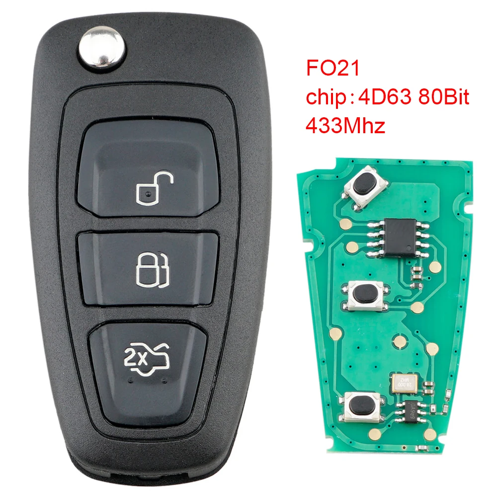 Замена дистанционного ключа автомобиля 433 МГц 3 кнопки флип дистанционного ключа с 4D63 80 бит чип и F021 лезвие подходит для Ford Focus Mk1 Mondeo