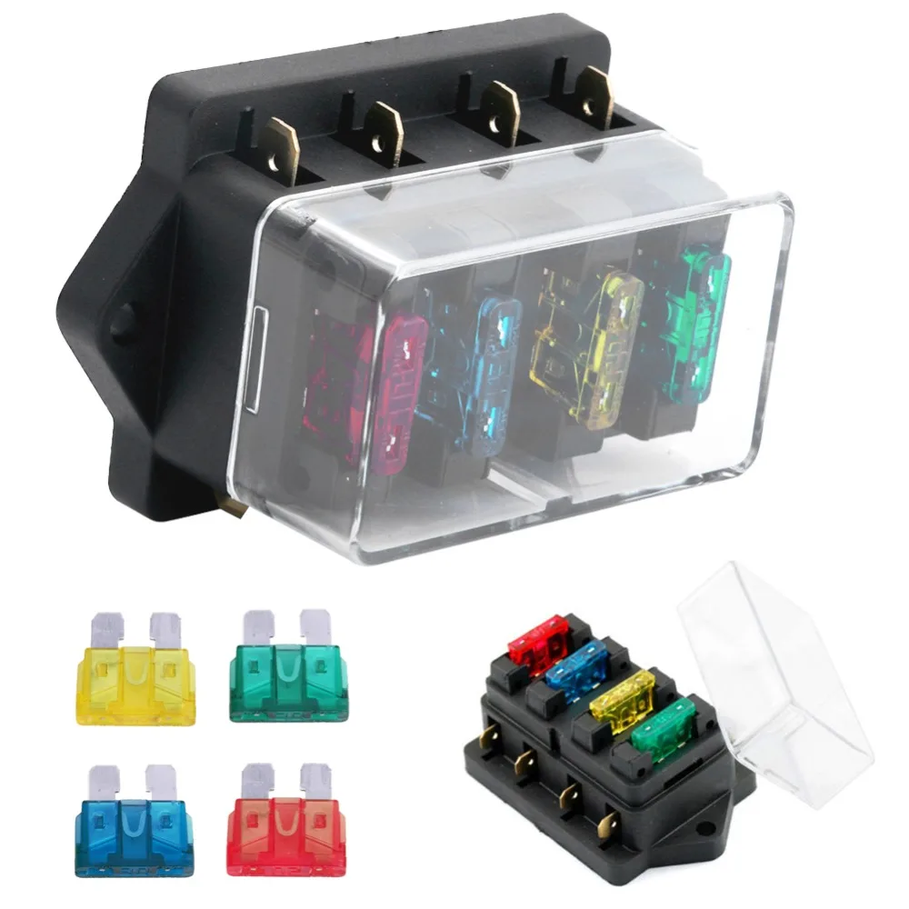 Горячее предложение DC 12 V/24 V 4 Way транспортное средство машина автоматический плоский предохранитель Box держатель цепи Стандартный ATO + 4X пред...