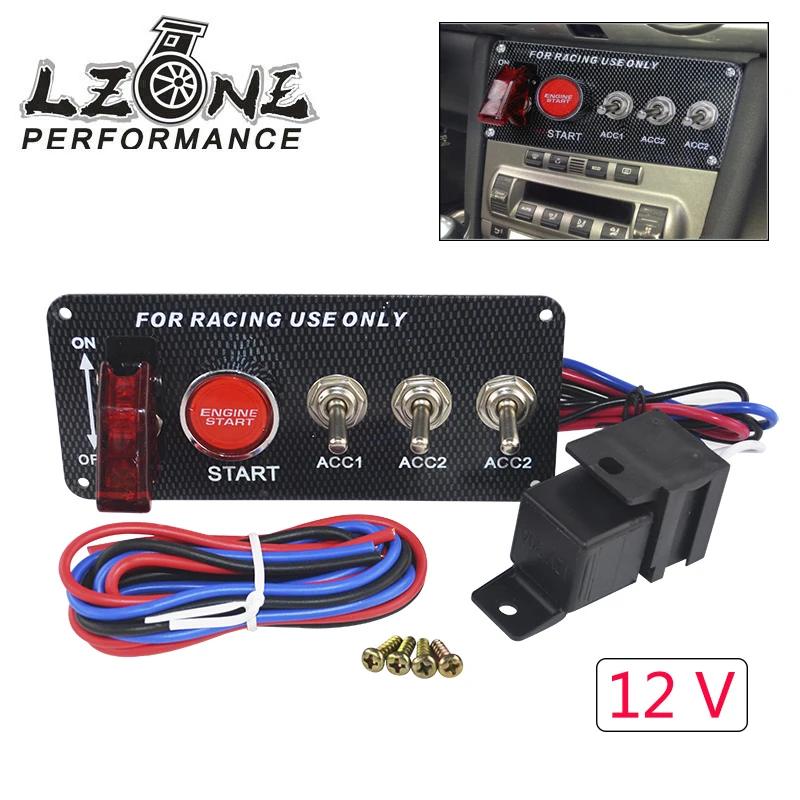 LZONE-углеродного волокна гоночный автомобиль 12 В светодио дный зажигания Панель запуска двигателя Кнопка светодио дный Переключить JR-QT313