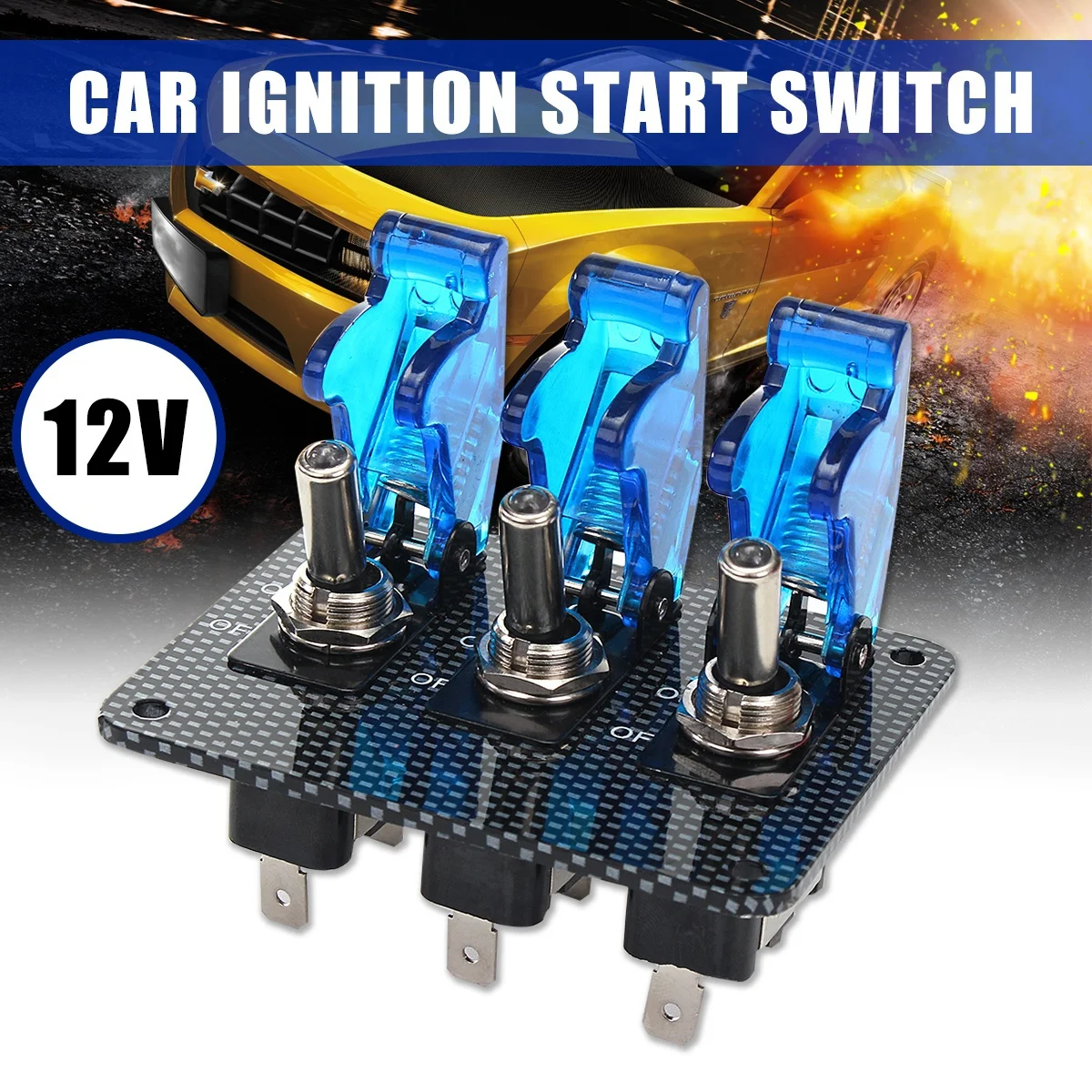 12 В 3 синий переключатель Панель кнопка запуска двигателя из углеродного волокна Кнопка зажигания тумблер карбоновый скоростной двигатель ...