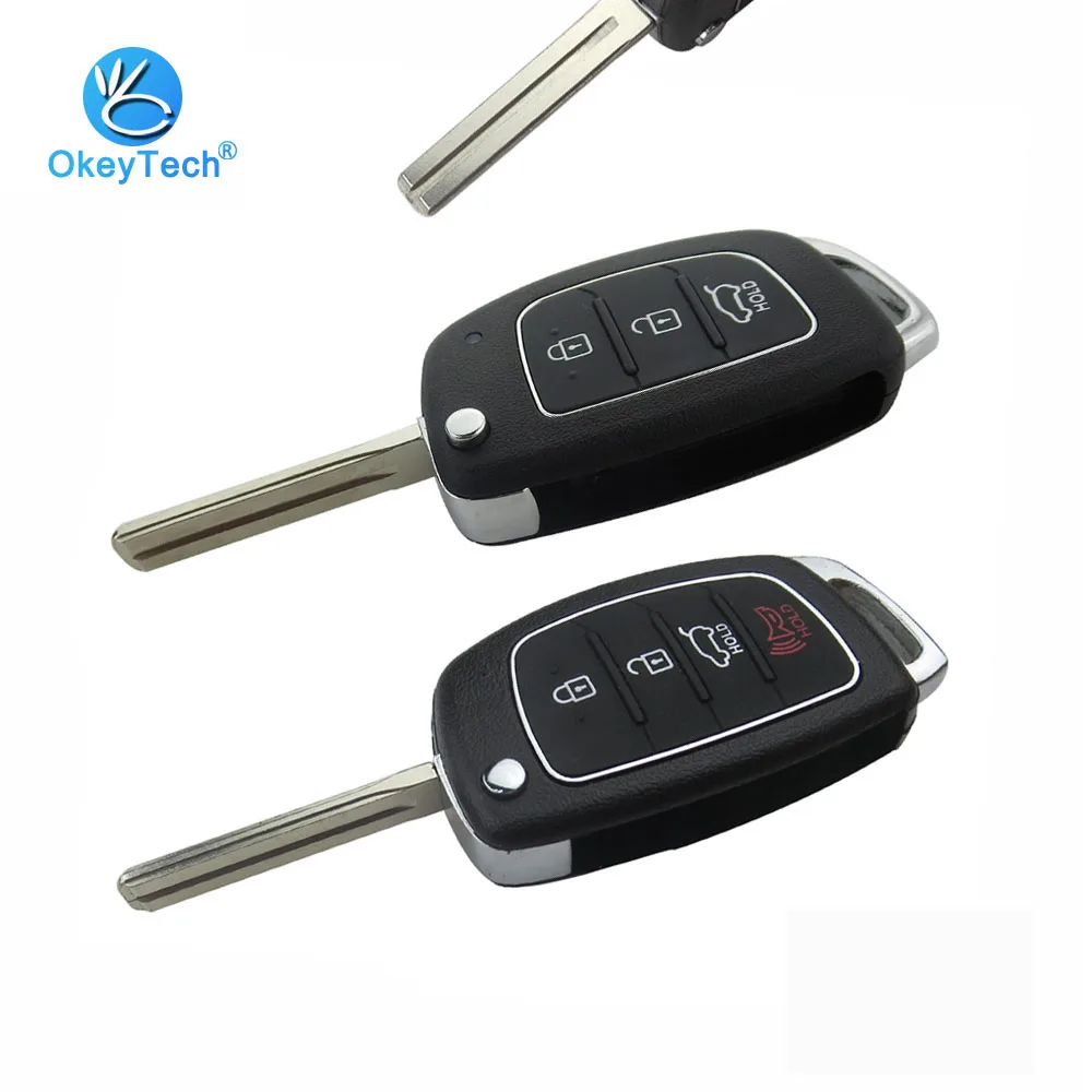 OkeyTech 3/4 Button Uncut Пустой Клинок с желобками флип складной авто удаленный ключевой чехол Обложка брелок для hyundai IX25 IX35 IX45 I40