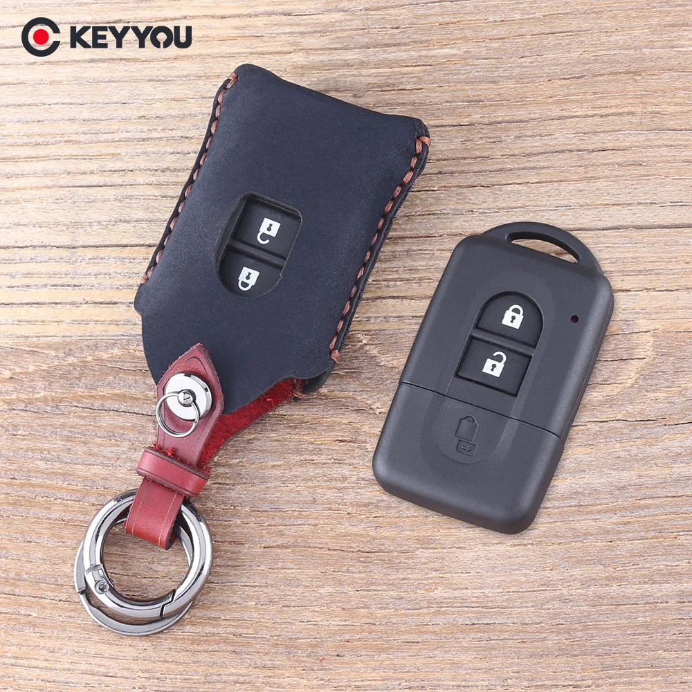 KEYYOU 2 пуговицы пояса из натуральной кожи протектор чехол для ключей в виде ракушки брелок Nissan Micra Xtrail Qashqai Juke Duke