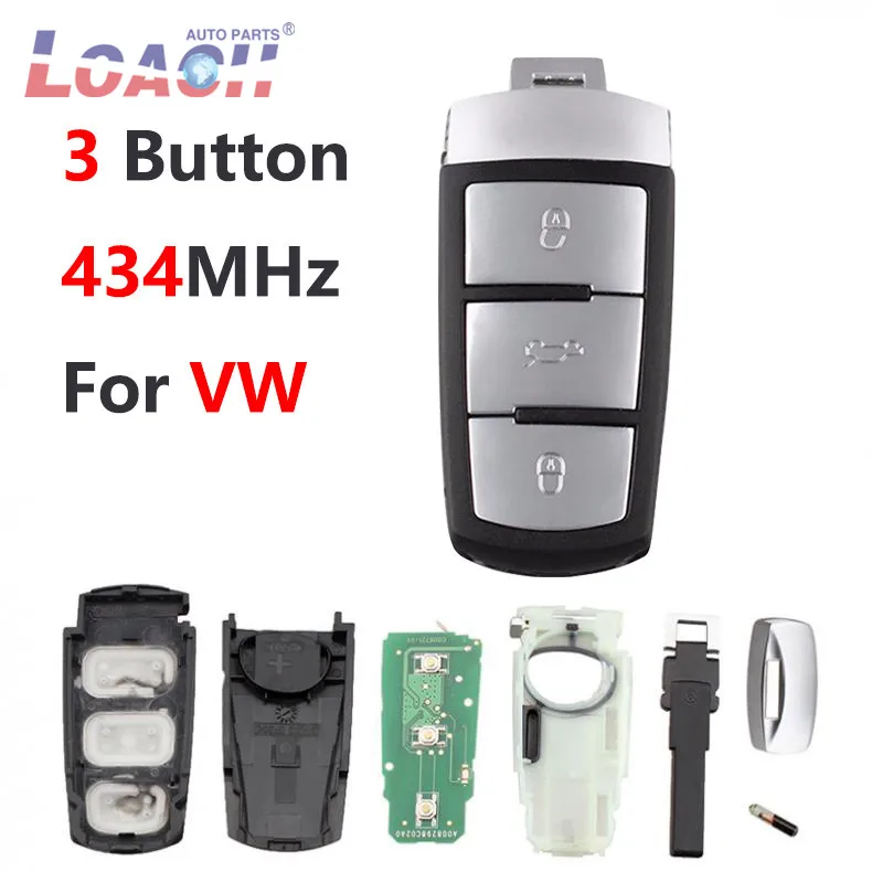 3 кнопки 434 МГц без ключа балванки для ключей умный автомобиль дистанционный брелок с чипом ID48 3C0959752BA для VW Passat B6 3C B7 Magotan CC