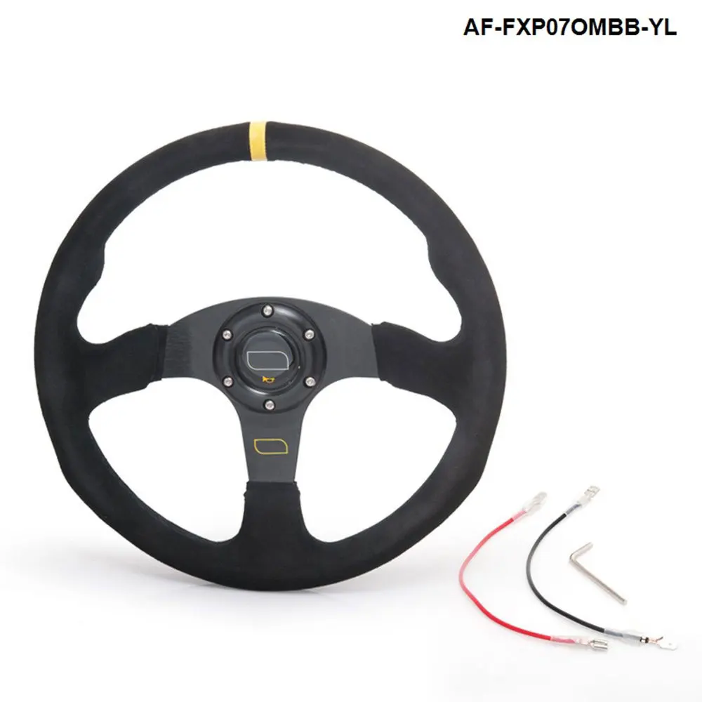 Универсальный 14 дюймов 350 мм Ом рулевое колесо замшевое рулевое колесо с кожаной оплеткой AF-FXP07OMBB-YL
