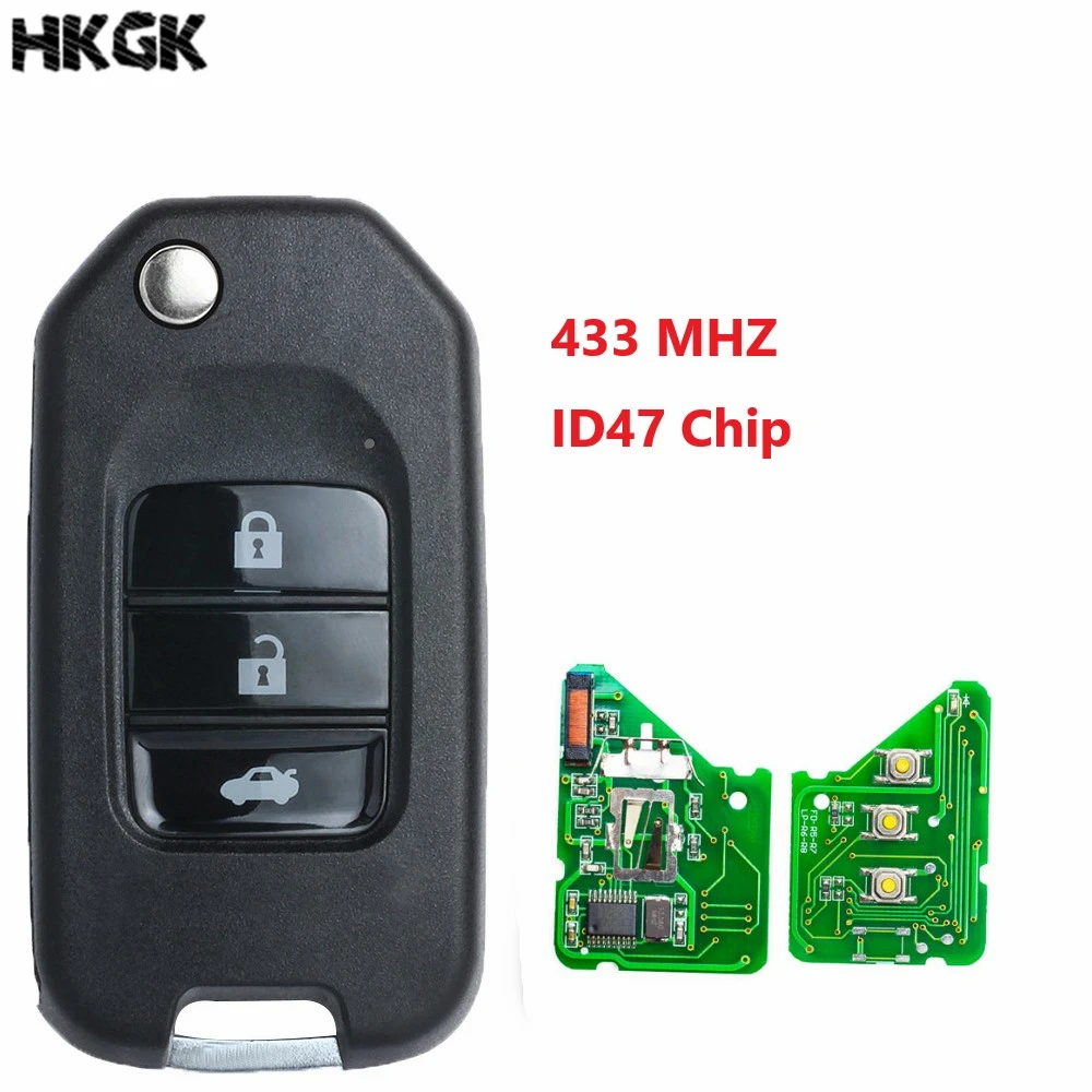 3 пуговицы удаленный ключевой 433 МГц с ID47 чип для Honda новый Accord Fit XRV город GREIZ 9th