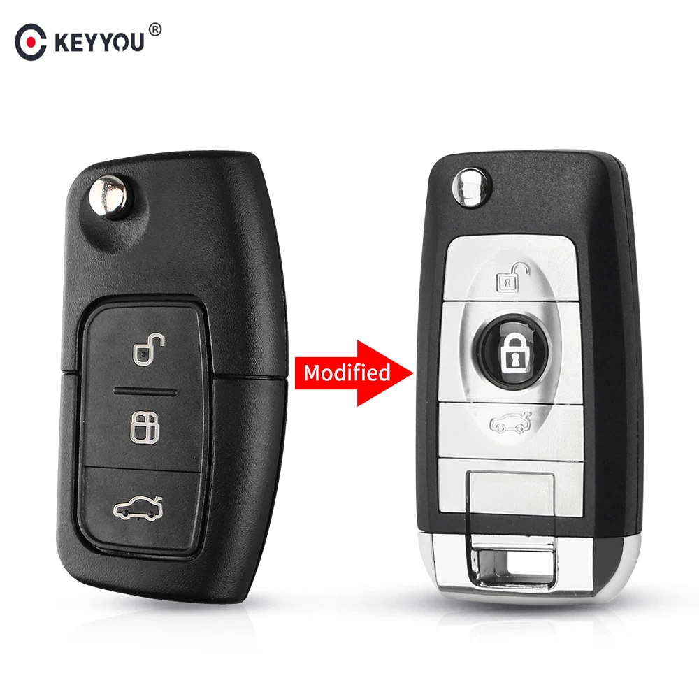 KEYYOU 3 кнопки модифицированный флип-ключ складной корпус автомобильного ключа дистанционного управления для Ford Focus Fiesta Mk C Max K автомобильный ...