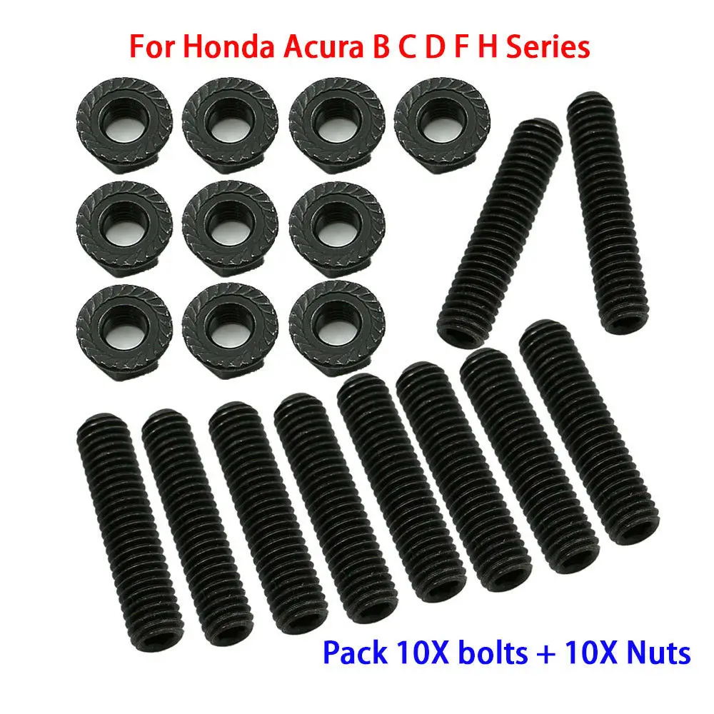 10 черный наконечник выпускной коллектор головка шпилька винт и Винты Комплект болты 12,9 класс для JC04 Honda Acura Integra Civic Del sol