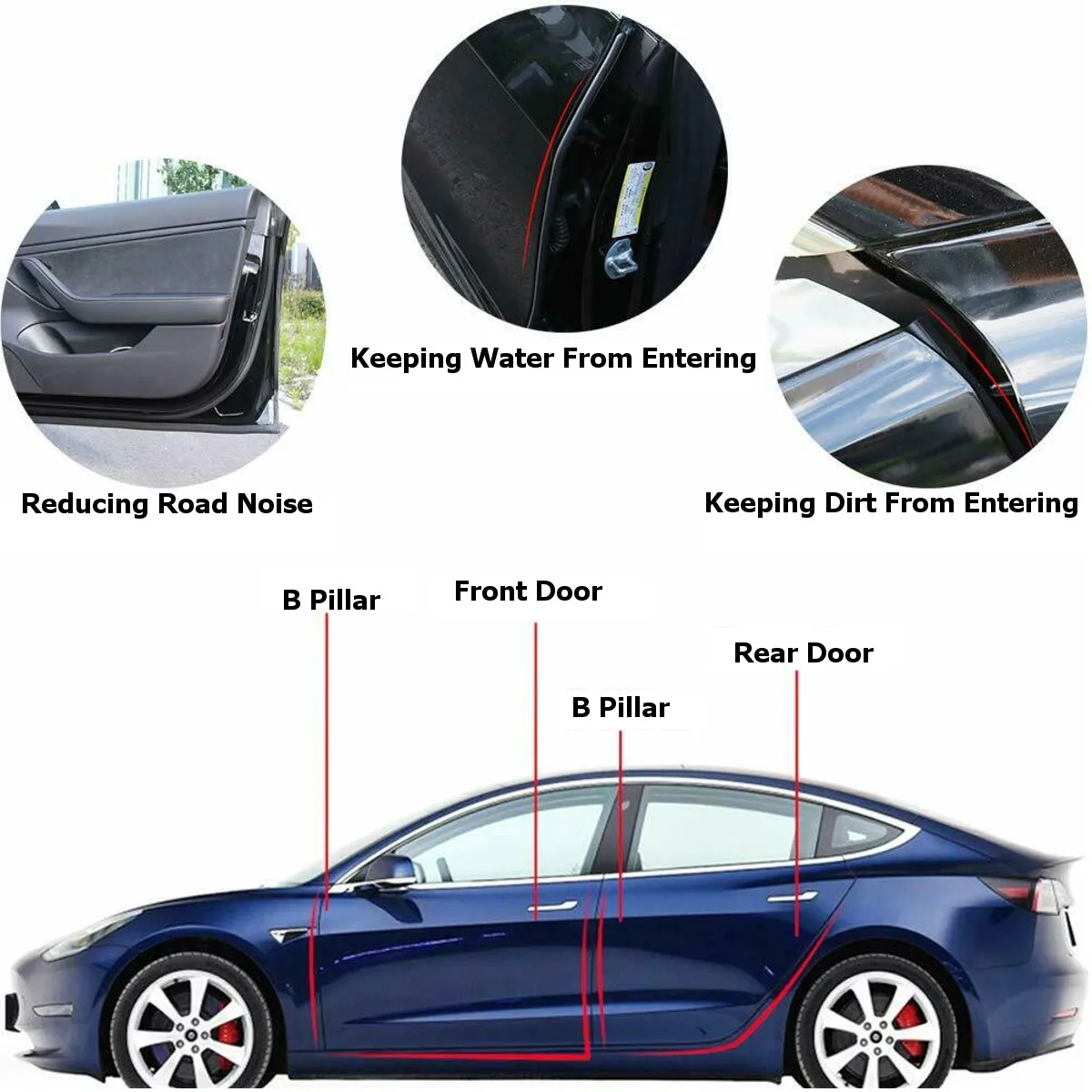 8x для Tesla Model3 дверной уплотнитель-комплект звукоизоляционные резиновые уплотнительные прокладки