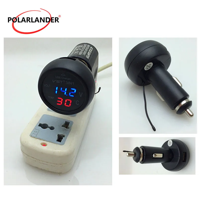 3 в 1 двойной дисплей Вольтметр автомобильного прикуривателя телефон зарядное устройство температура устройство для измерения напряжения ...