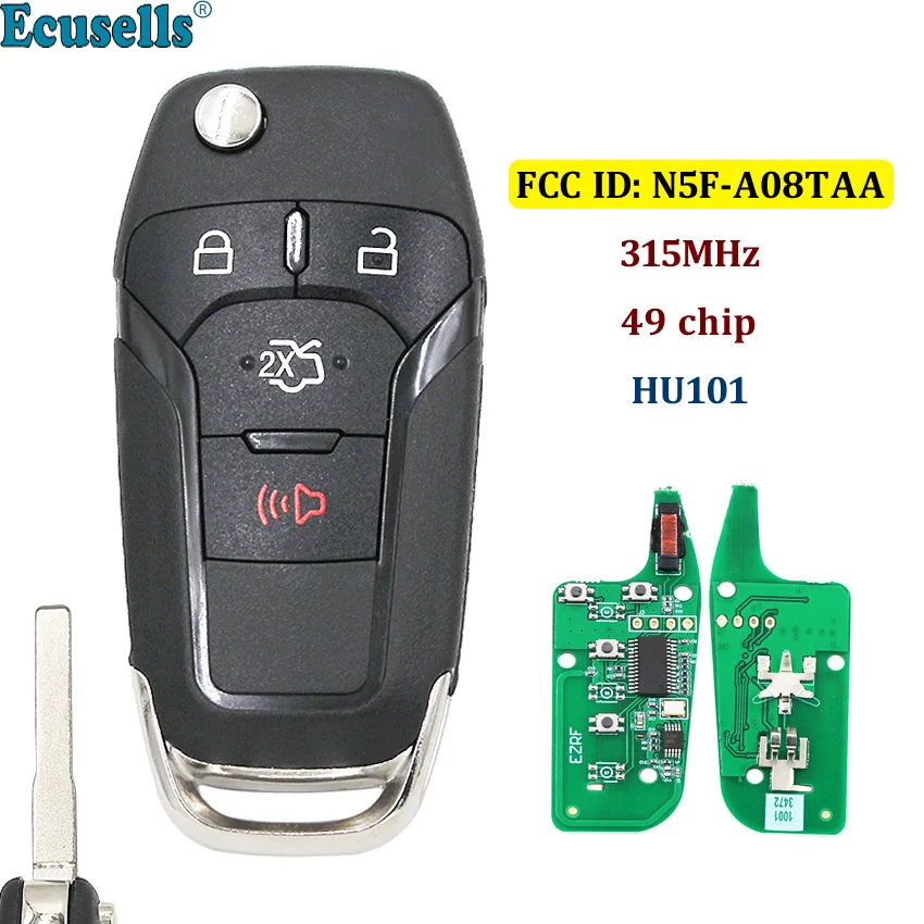 4 кнопки флип пульт дистанционного управления замками Fob 315 МГц с 49 чип Hitag Pro для Ford Fusion 2013-2015 FCC, аддитивного цветового пространства (ID: N5F-A08TAA ...