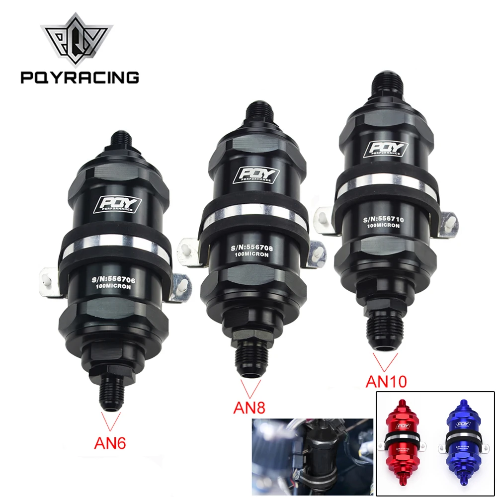PQY черный AN6 / AN8 / AN10 встроенный топливный фильтр E85 этанол с 100 микрон элемент из нержавеющей стали и стикер PQY