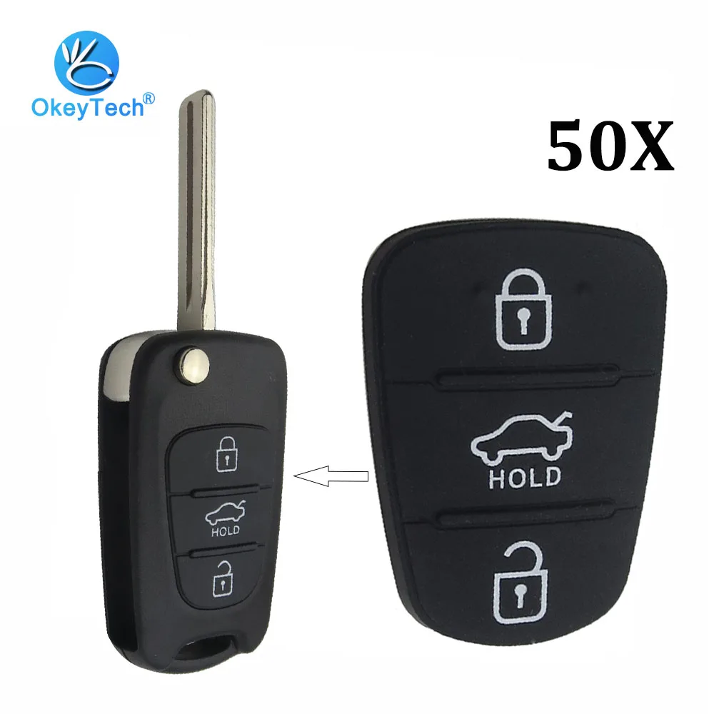 OkeyTech 50 шт./лот для hyundai резиновые кнопки Pad Флип складной удаленной машине ключ оболочки чехол Fob колодки для i30 IX35 I20 K2K5