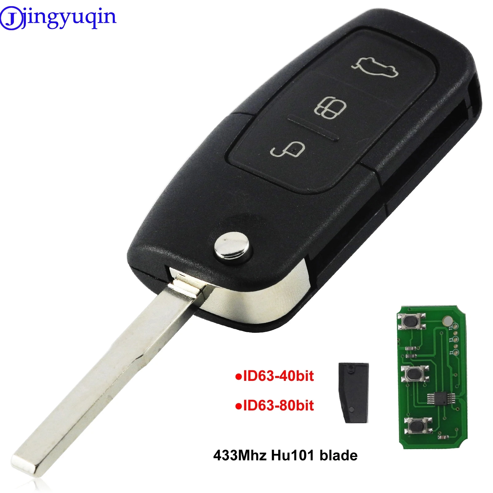 Jingyuqin 433 МГц 4D63 40 бит 80 бит 3 кнопки флип складной ключ дистанционного управления для Ford Focus Fiesta 2013 Fob Case HU101 Blade