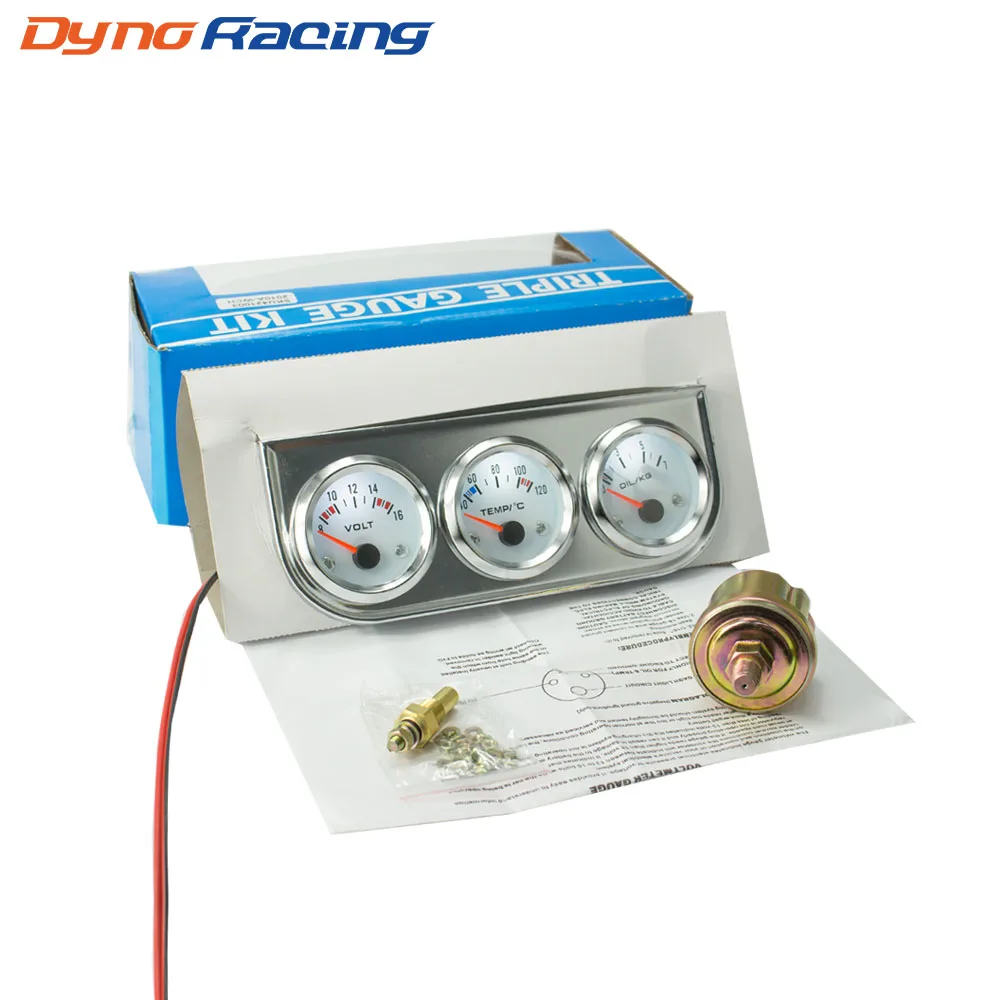 Chrome 2''52MM тройной Калибр комплект вольтметр воды датчик температуры датчик давления масла с Сенсор автомобиль метр YC100895