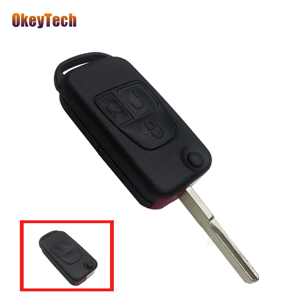 Okeytech Switchblade флип складной дистанционную Оболочки 2 трека лезвия для Mercedes-Benz ML SL S C 3 кнопки заменить автомобиль брелок случай крышки