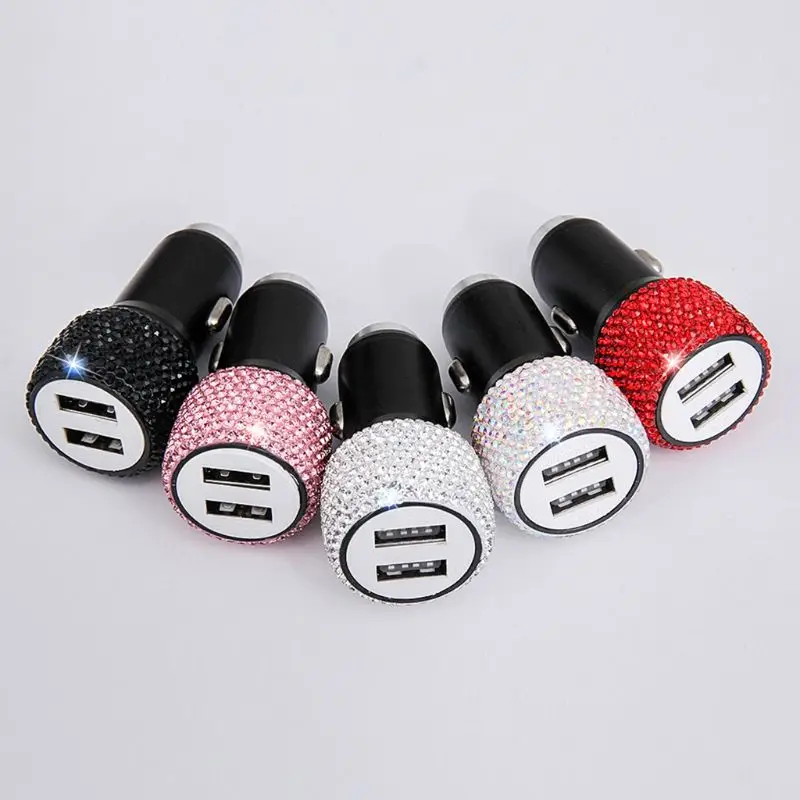 Двойной зарядное устройство USB Bling ручной работы, со стразами хрустальные Автомобильные украшения для быстрой зарядки автомобильных декоро...