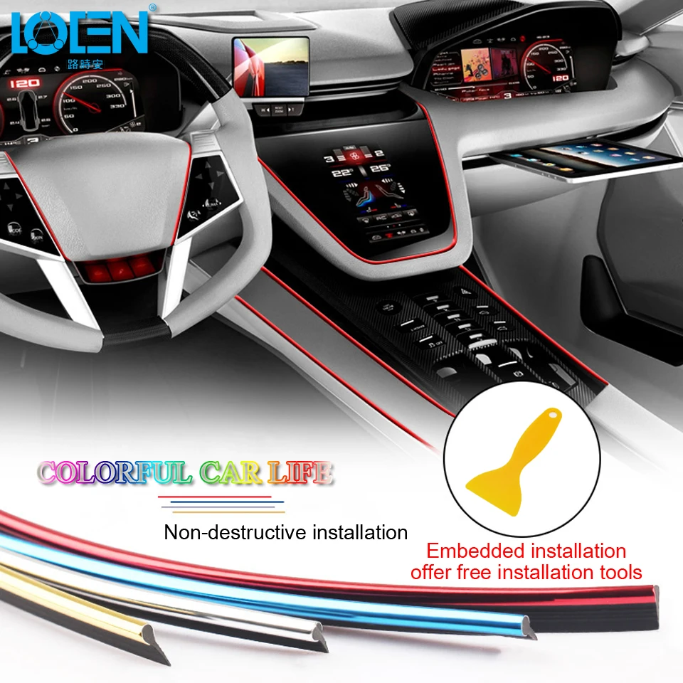 LOEN 5 м стайлинга автомобилей полоса для отделки интерьера Chrome серебро синий и красный цвета Литье отделка воздуха приборной панели край две...