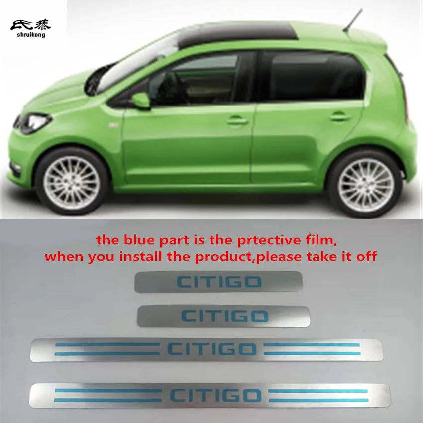 4 шт./лот автомобильные наклейки для 2017 2018 2019 SKODA CITIGO ультра-тонкий Нержавеющая сталь порога Накладка