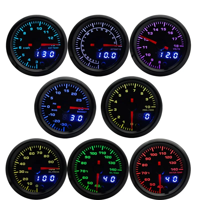 2 мм "52 мм 7 цветов светодио дный светодиодный двойной дисплей Boost/вода/Температура масла/давление масла/Вольт/воздух топливное Соотношение/...