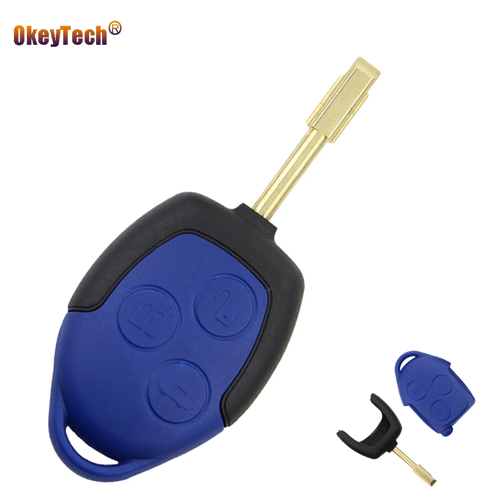 OkeyTech для Ford Focus Transit Mondeo подключения дистанционного Авто ключи в виде ракушки Синий чехол 3 пуговицы Uncut лезвие Замена Fob