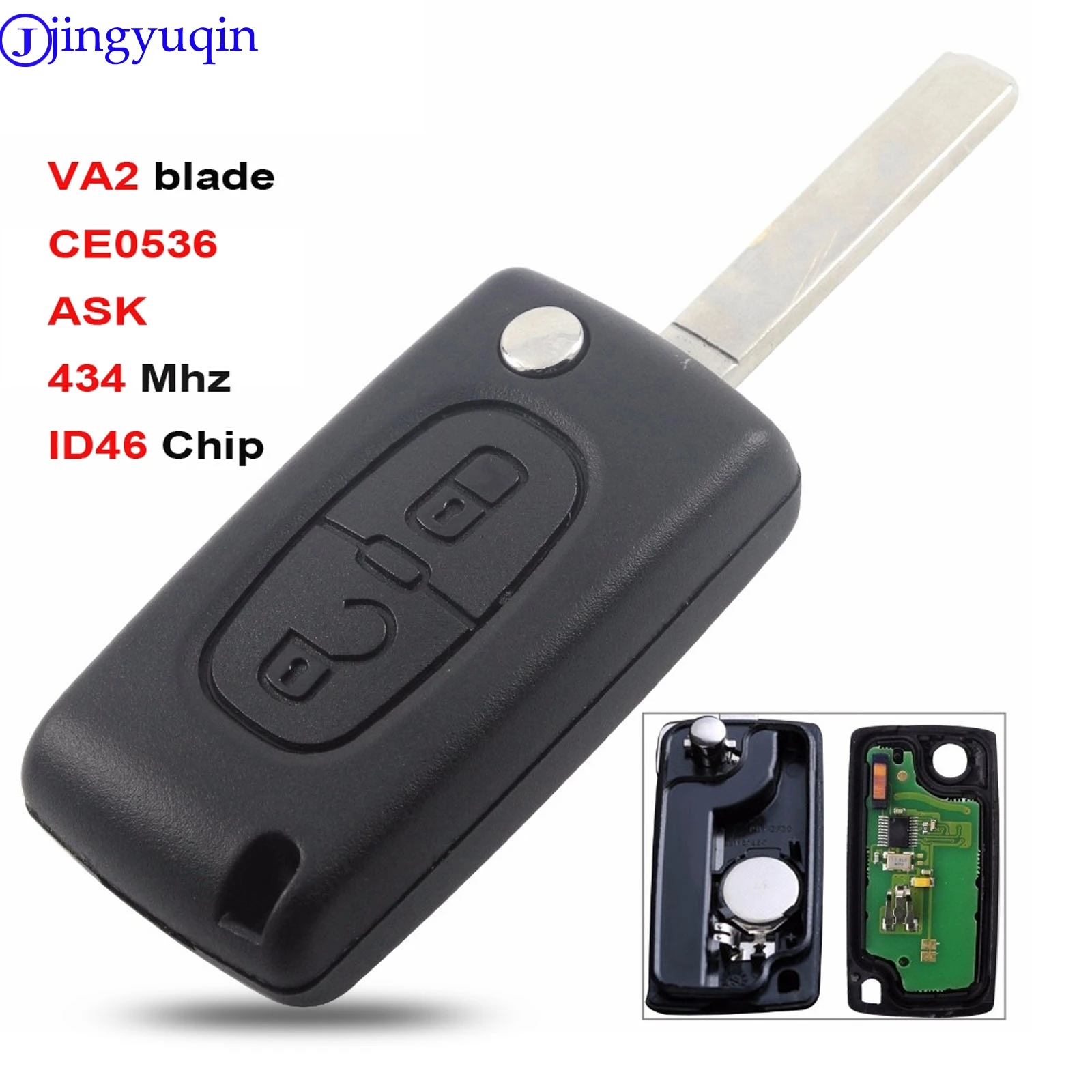 Jingyuqin 2 кнопки дистанционного брелока ASK 434 МГц ID46 чип для peugeot 207 307 308 407 807 для Citroen VA2 Blade CE0536
