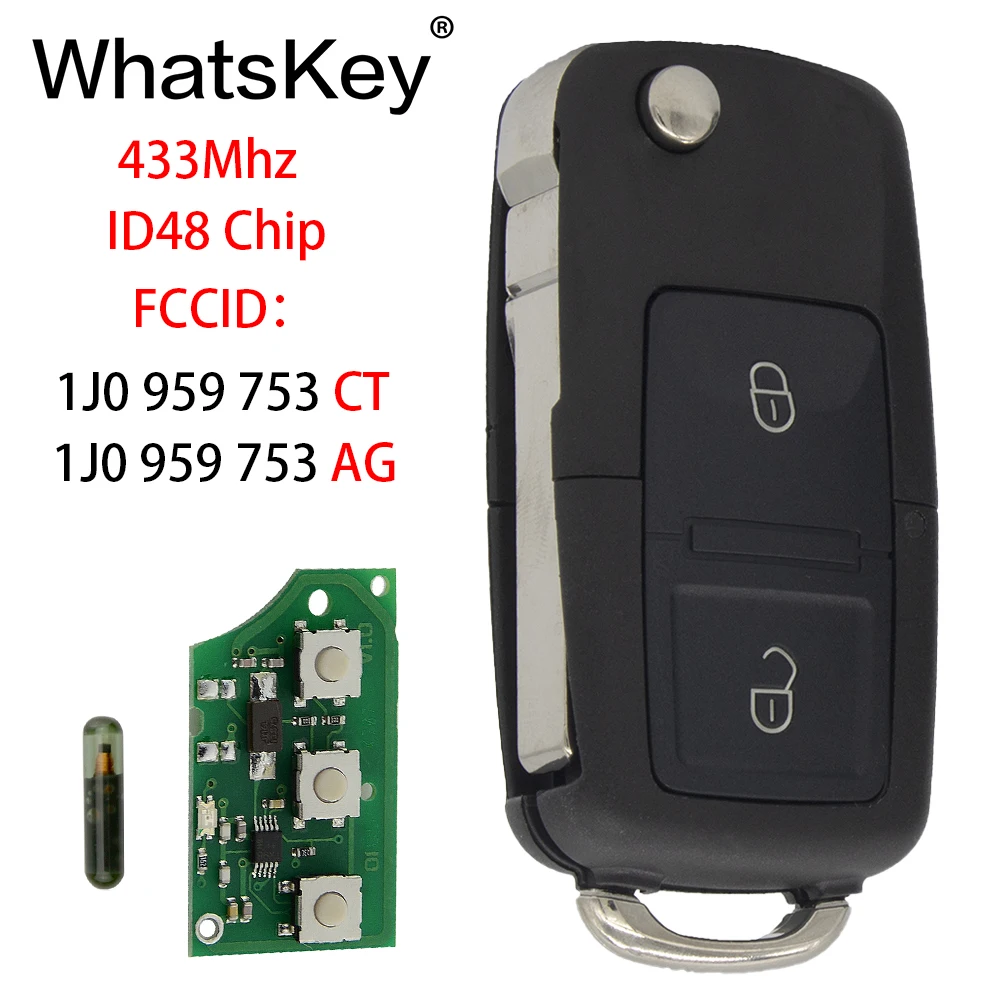 Дистанционный Автомобильный ключ WhatsKey 433 МГц ID48 чип для Volkswagen VW 1J0959753CT 1J0959753AG Beetle Bora Polo Passat B5 Golf