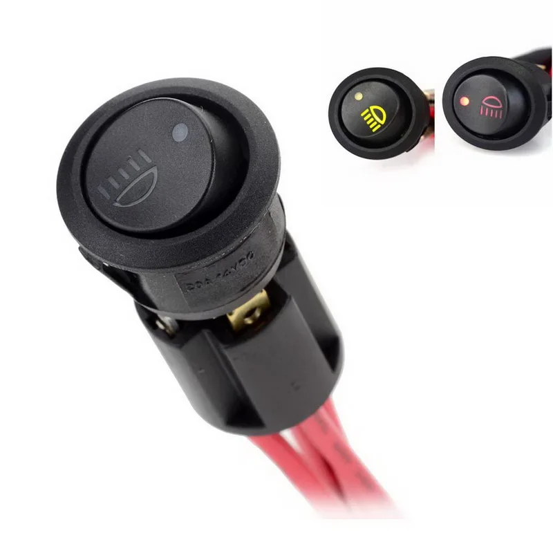 Foglight переключатель ВКЛ-ВЫКЛ кулисный переключатель круглый 2 светодиода 20 мм с монтажным основанием 20 см 16awg шоу красный желтый светодиод 20A для автомобиля противотуманных фар
