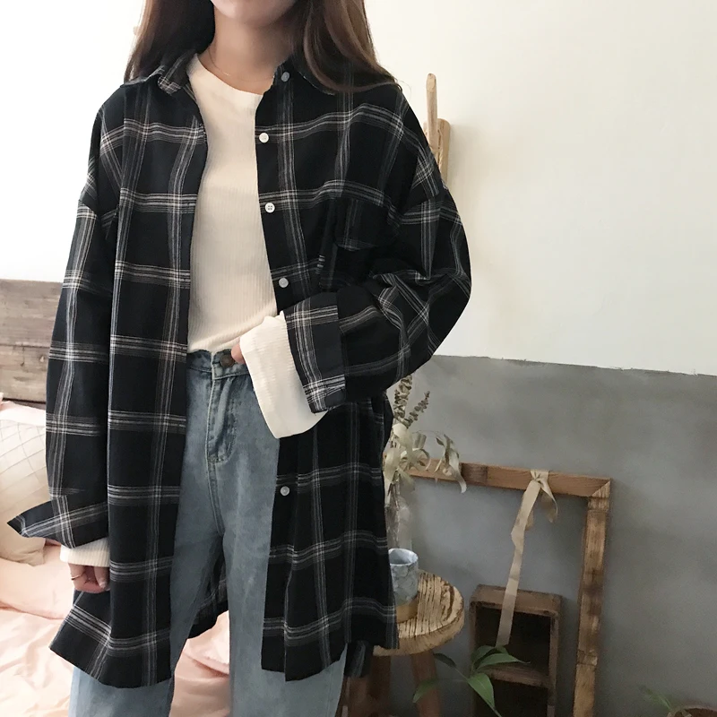 Женские рубашки повседневные клетчатые универсальные свободные с длинным рукавом студенческие повседневные BF Ulzzang однобортные женские s к...