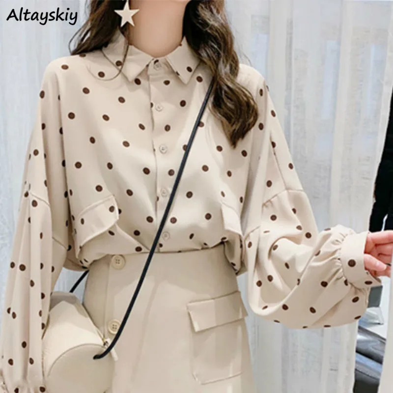 Блузки Рубашки женские в горошек с отложным воротником простые свежие элегантные повседневные женские студенческие дизайнерские топы в Корейском стиле мягкий шик