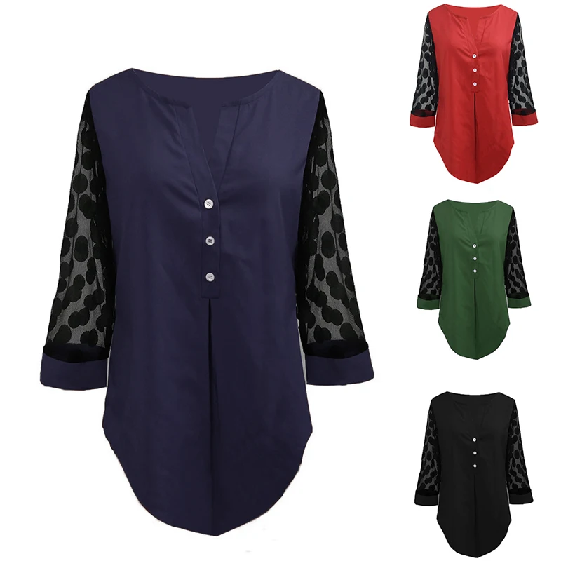 Элегантная блуза на пуговицах с v-образным вырезом 4XL 5XL размера плюс Женская Туника Топы сексуальные прозрачные женские рубашки с рукавом т...