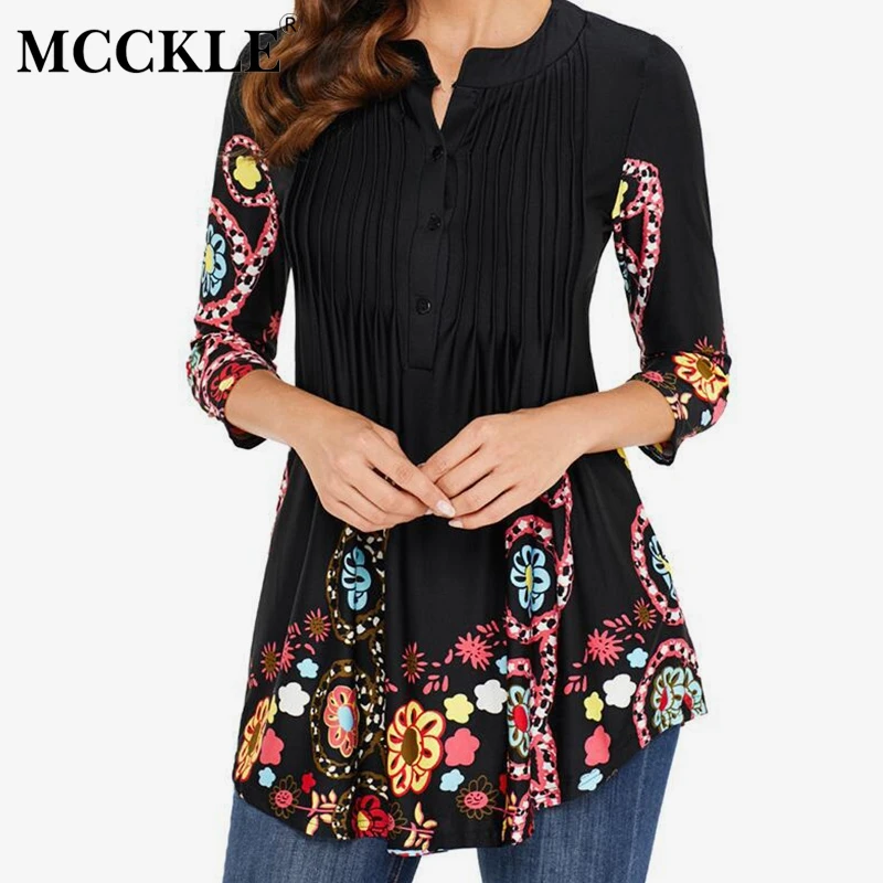 Весенняя туника с принтом женская рубашка блузка 3/4 рукава Гофрированные блузки и блузки женские s 2019 летние модные рубашки плюс размер 5XL