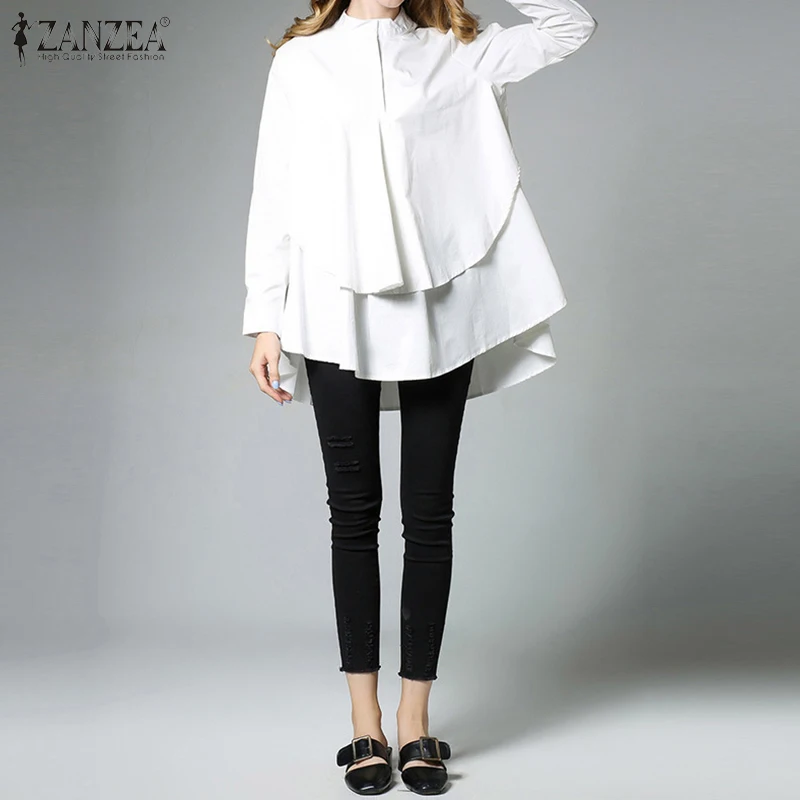 Женские Асимметричные рубашки ZANZEA, весенние топы с длинным рукавом, двухслойная блузка, женские офисные Блузы на пуговицах, большие размеры, Повседневная Туника 5XL