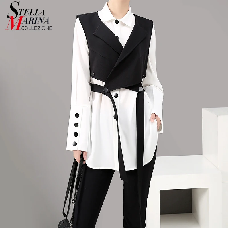 Новинка, комплект из двух предметов с длинными рукавами, однотонная белая блузка, рубашка и жилет 2019, корейские модные блузки, женская рубаш...