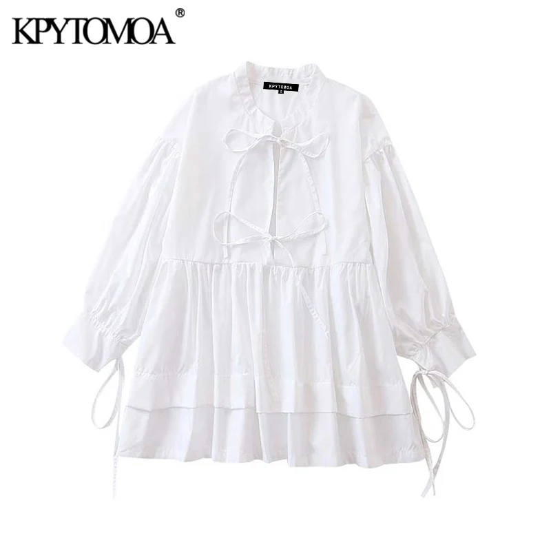 Винтажные Стильные топы оверсайз с галстуком-бабочкой женские блузки 2019 Модные свободные рубашки с рукавом три четверти повседневные блуз...