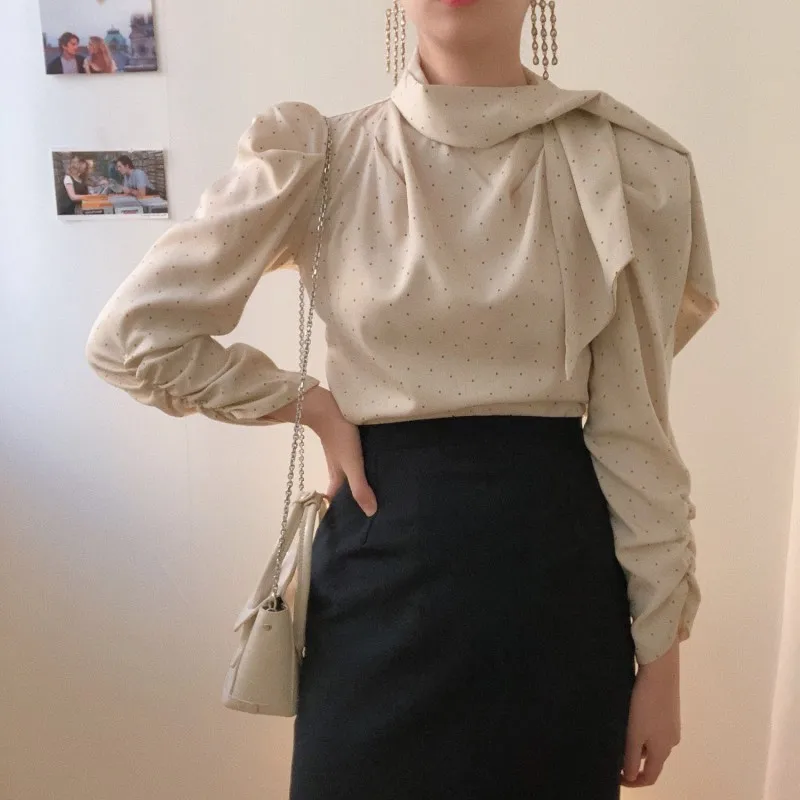HziriP Женские топы и блузки с пышными рукавами блузка в горошек офисная рубашка Blusas Mujer De Moda 2020 новинка OL Элегантные винтажные женские рубашки