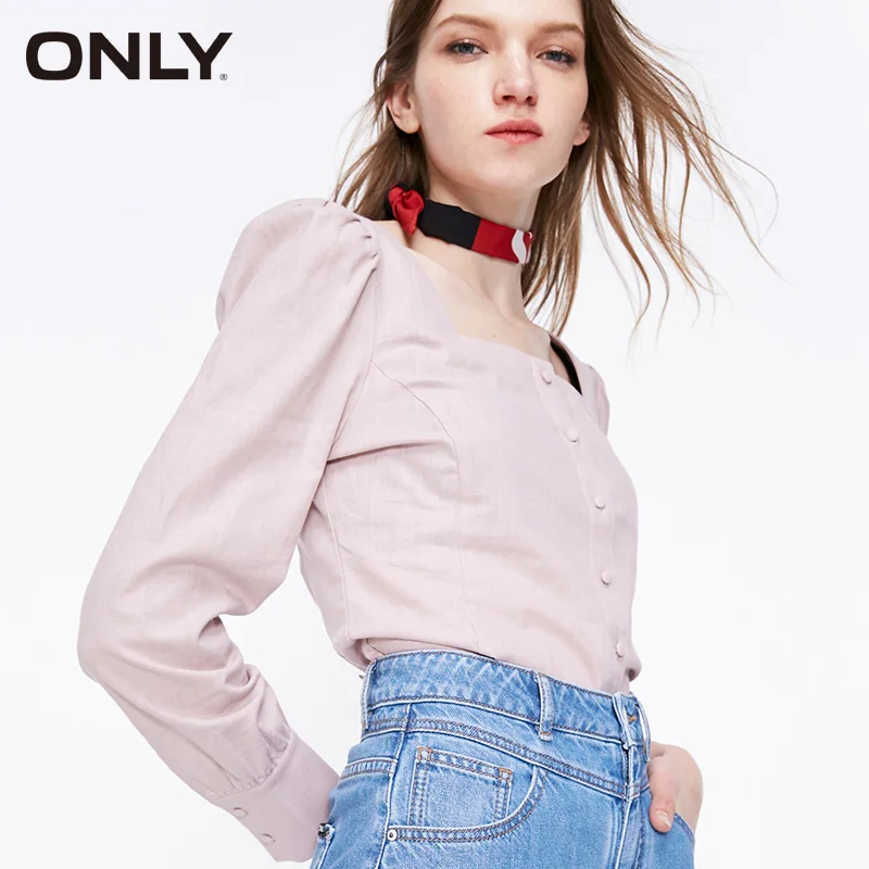 Только Весенняя женская льняная рубашка с квадратным вырезом | 119105509