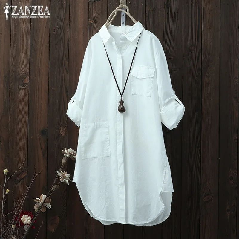 Для женщин блузка ZANZEA Лето 2019 г. хлопок белье повседневное рубашка с длинными рукавами Осень Lepal Blusas офисные белые топы корректирующи