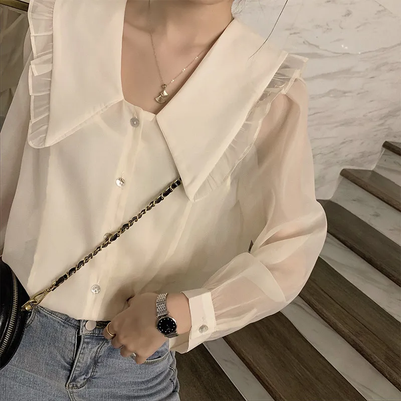 MISHOW 2020 Весенняя новинка Женская блузка однотонная Повседневная Женская рубашки с оборками с отложным воротником модная верхняя одежда MX20A4481
