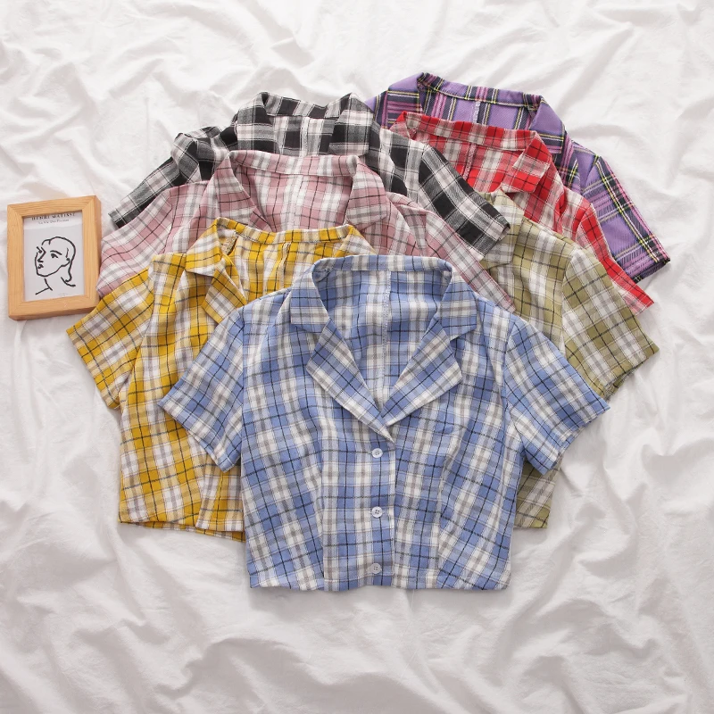 Женская винтажная клетчатая блузка на пуговицах, Элегантная укороченная блузка на лето 2020